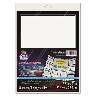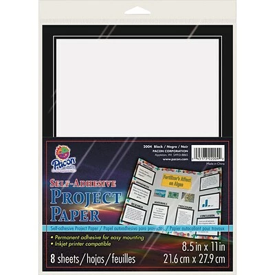 Pacon® White/black self-adhesive project paper can be used to add instant borders to your projects and measures 8 1/2″ x 11″, sold as 8 sheets per pack.
