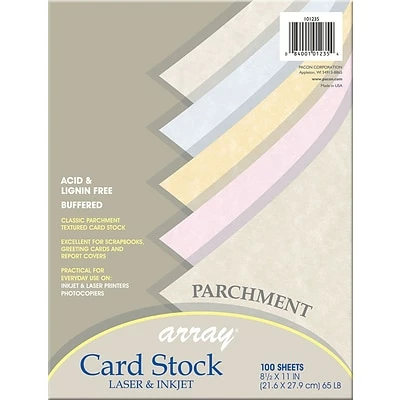 The heavyweight Pacon® Array® Card Stock is perfect for greeting cards, report covers, flyers, announcements and memory books. It is available in assortment of colors that include blue, gold, natural, pink, and tan.