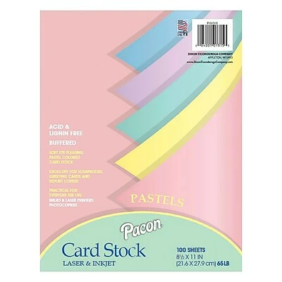 Create durable paper creations with this acid-free, lignin-free card stock in an array of pastel hues. Each page fits into your inkjet or laser printer for convenient printing, and the 65-pound paper weight folds and cuts easily. This Pacon Array card stock comes in a pack of 100 sheets to handle multiple projects.