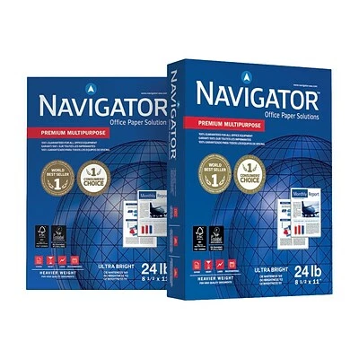 Use this multipurpose paper with most laser printers, copiers and other multifunction machines for crisp, clear results. The 24-pound paper weight creates documents with a high-quality look and feel, while the white color and 99 brightness make it easy to produce legible text and graphics. This Navigator premium paper comes with 5,000 sheets, so you can stock up various printers around the office conveniently.