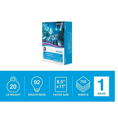 High-quality and digitally optimized, Xerox Vitality paper is just what you need to get the job done efficiently and get it done right. Whether you’re a professional printer, buying for the whole office, making 500 copies, laser printing at work, or using a desktop printer in your home office, you know you can always expect better results on Xerox Vitality paper.
