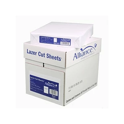 Alliance processed Lazer Cut Sheets are suitable for high-speed copiers, laser printers, inkjet printers, and offset processes. All perforations are clean-cut, leaving a “perfect edge”, and allow sheets to run smoothly without any paper jams. Laser-cut sheet paper is a cost-effective solution for any office or organization that wants to print professional statements, invoices, notices, direct mail, and gifts.