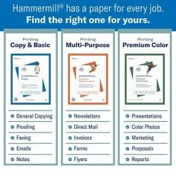 Give contracts, invoices, applications and legal briefs with this Hammermill Premium laser copy paper. The 24-pound paper weight withstands frequent use, and the 99.99 percent jam-free guarantee ensures smooth, reliable printing. This paper is FSC-certified for an eco-friendly way to meet your office’s document needs. Boasting an ultra-smooth surface, this Hammermill Premium laser copy paper delivers true color reproduction for high-quality images and text.