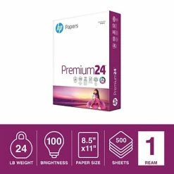 This HP brochure paper has an attention-grabbing glossy finish that makes a great impression. Rated at 48 pounds with a brightness of 90 US / 98 Euro, this paper feels substantial and looks professional in the hands of customers. Graphics and colors pop, and black text is razor sharp with no risk of smudging.
