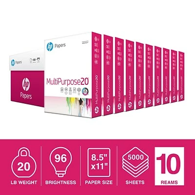 Print documents for sorting, filing and mailing with this HP multipurpose paper. The extra bright surface and white color let text stand out for easy reading, and ColorLok technology resists smearing to keep each printout crisp and neat. This HP multipurpose printer works in printers, copiers and plain paper fax machines, making it easy to keep all of your printer trays ready for action.