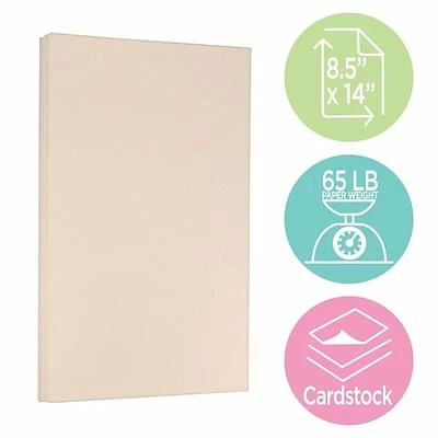 Natural in every sense of the word, this natural colored JAM Paper Parchment Legal Size Cardstock is made of 30% recycled post consumer content and has a shade of off-white that makes it perfect for any occasion. This 65lb paper cardstock is thick and wonderful and great for invitations, notes, letters, arts and crafts, business mailings, promotional and marketing materials and more! The parchment finish has a mottled, or dappled look to it, making it look authentic. It is a standard legal size so it measures 8.5 x 14 inches and it is sold in packs of 50. Size: 8.5 x 14 inches | Color: Natural | Quantity: 50/pack