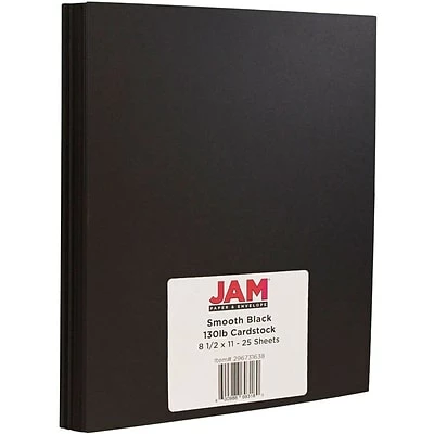 JAM Paper® Matte Cardstock is a high quality multipurpose product. Whether you’re using for business related needs or making a fun DIY craft, this 130 lb. heavyweight Smooth Black matte cardstock offers a durable and sturdy base for any project. Create your own business cards, graduation invitations, certificates of achievement, wedding save the dates, restaurant menus, and more that is certain to stand out. However way you use it, you are guaranteed a flawless finish as this cardstock is incredibly durable and appealing. All of our colorful cardstock has matching paper (sold separately), so go ahead and click through to find your favorites! This pack contains 25 sheets of Smooth Black cardstock. Each sheet measures 8 1/2″ x 11″ and has a smooth finish.