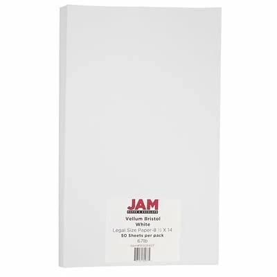 Ensure menus, letters, and publications have a professional appearance with this 50-sheet pack of white card stock. The translucent vellum finish holds pigments and dyes for vibrant color, while the acid-free paper resists fading or deterioration. The 67-pound weight of this JAM Paper card stock is flexible and durable for mailed invitations or brochures.