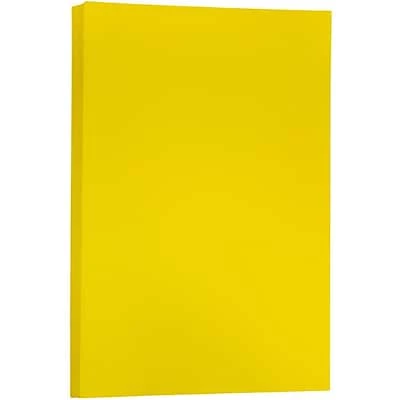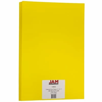 JAM Paper® Yellow Matte Tabloid Paper features a bright and sunny lemon yellow color. This pack contains a total of 100 sheets of paper. Each legal sized sheet measures 11 x 17 inches. This high quality, smooth, 30% recycled, 24 lb. paper is printer friendly and acid free. Use it to create flyers, posters, brochures, pamphlets, informational sheets, large event programs, maps, signs, and more! The stunning yellow color of this paper also makes its great for arts and crafts and DIY projects such as making your own decorations. This large and bright paper is ideal for promotional materials for your business and any item that needs to stand out!