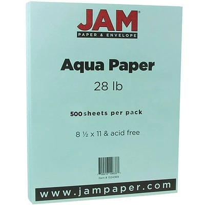 JAM Paper® Aqua Matte Paper is great for multiple home and office needs. This letter sized paper measures 8.5 x 11 inches in size per sheet. There is a total of 500 sheets in this pack! With its light and soft ocean-like aqua blue color, this slightly textures, 28 lb. paper is great for promotional materials, invitations, decorations, and other supplies for summer events and parties! This paper is acid free compatible with most printers. Use it to create table menus, programs, class handouts, fun letters and messages, and more. Its color and quality make it great for arts, crafts, and DIY projects of multiple kinds.