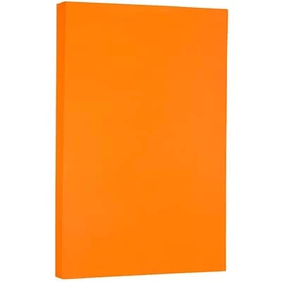 JAM Paper® 8 1/2″ x 14″ Brite hue orange recycled legal size paper in a pack of 500 is used to make greeting cards, invitations or any other special occasion cards and is made from 30% post consumer paper.