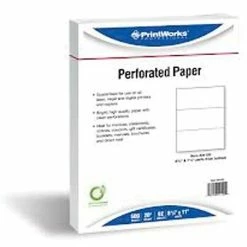 Printworks® Professional Perforated paper in white color measures 8 1/2″ x 11″ and is perfect for invoices, billing statements, direct mail and reports. Paper of 20 lbs. weight features perforations at 3 5/8″ from bottom and is sold as 2500 per case.