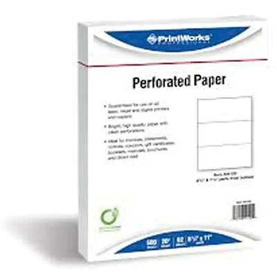 Printworks® Professional Perforated paper in white color measures 8 1/2″ x 11″ and is perfect for billing statements, direct mail and reports. Paper of 24 lbs. weight features vertical perforations at 1/2″ from left and sold as 2500 per case.
