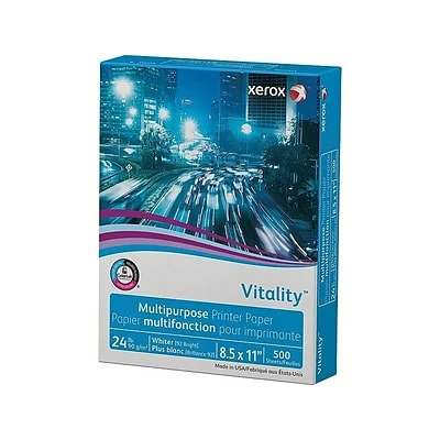 Xerox® Vitality® Multipurpose Printer Paper is a versatile paper that is good for most jobs. Featuring a whiter 92 GE brightness and higher opacity, making it perfect for documents with a crisp, professional look. Features ColorLok® Technology for bolder blacks and vivid colors with ink jet printing and better quality and performance with laser printing. 99.99% jam free on high-speed digital printing equipment. Designed to run in all types of printers and copiers, and ideal for high-volume printing.