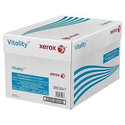 Xerox Vitality multipurpose printer paper is a versatile paper that is good for most jobs. Featuring a whiter 92 GE brightness and higher opacity, making it perfect for documents with a crisp, professional look. Features ColorLok technology for bolder blacks and vivid colors with ink jet printing and better quality and performance with laser printing. 99.99% jam free on high-speed digital printing equipment. Designed to run in all types of printers and copiers, and ideal for high-volume printing.